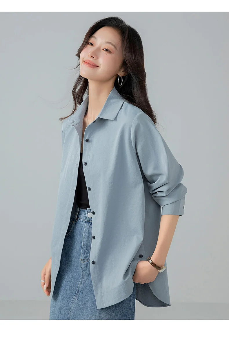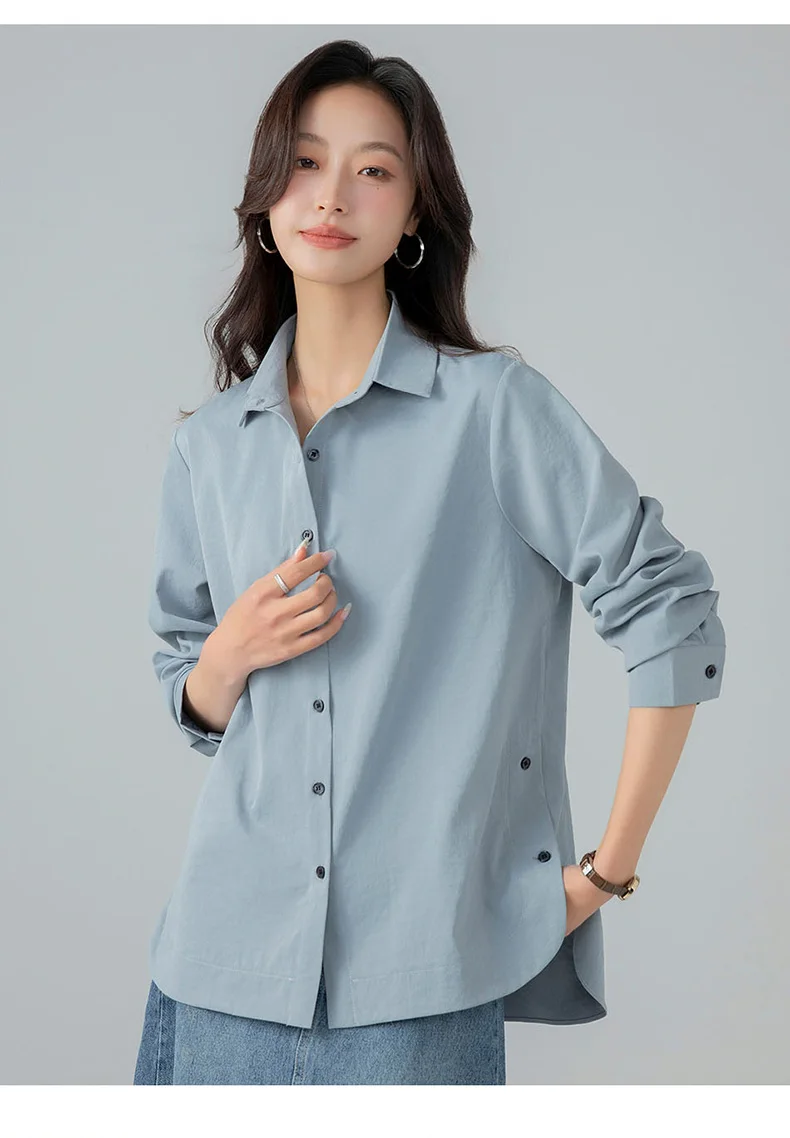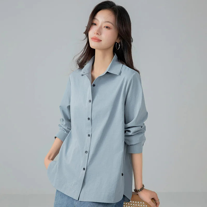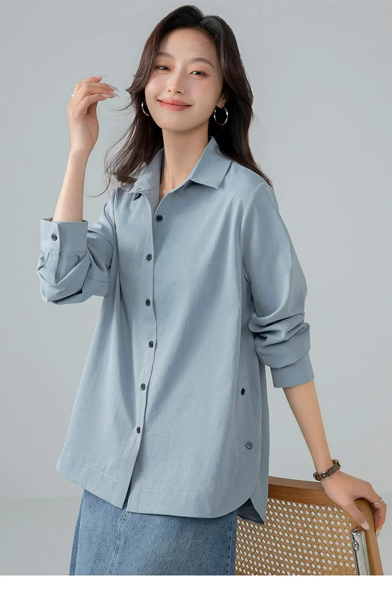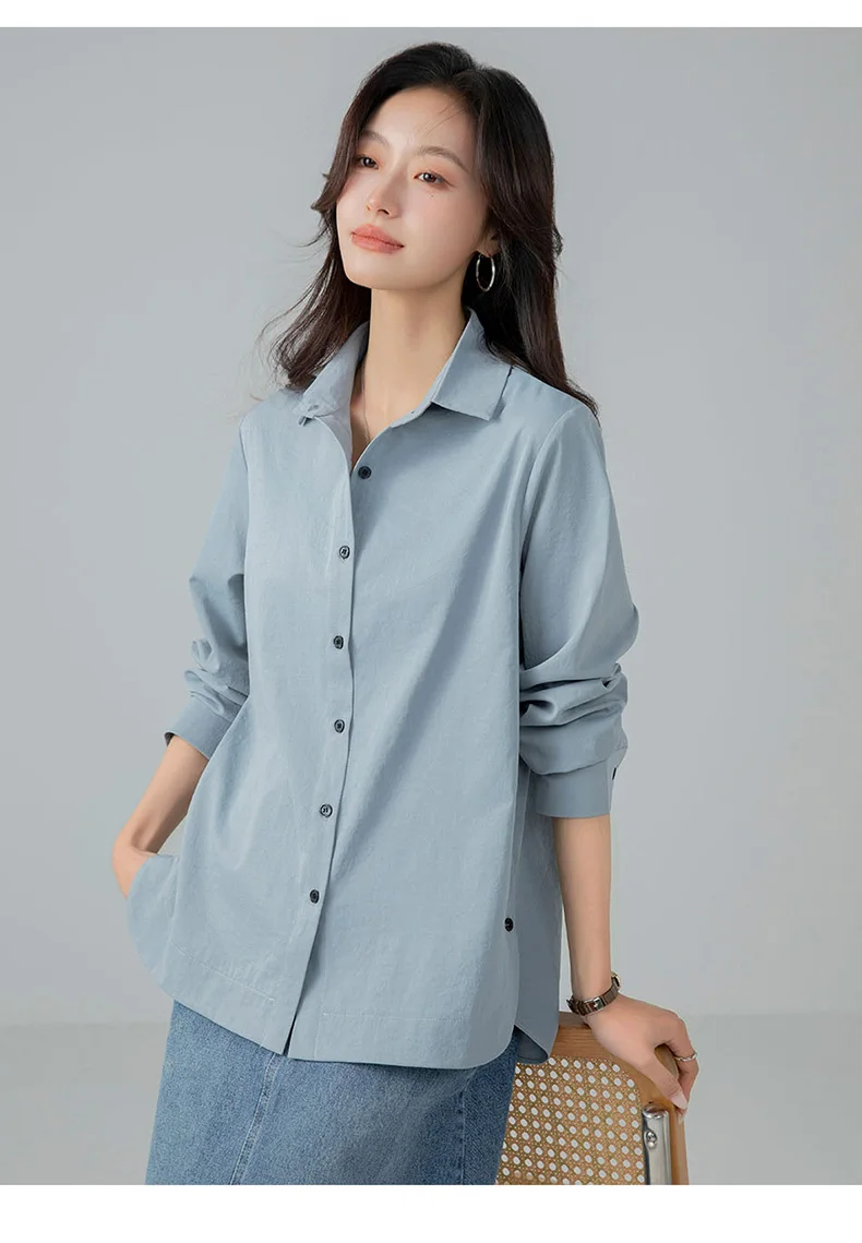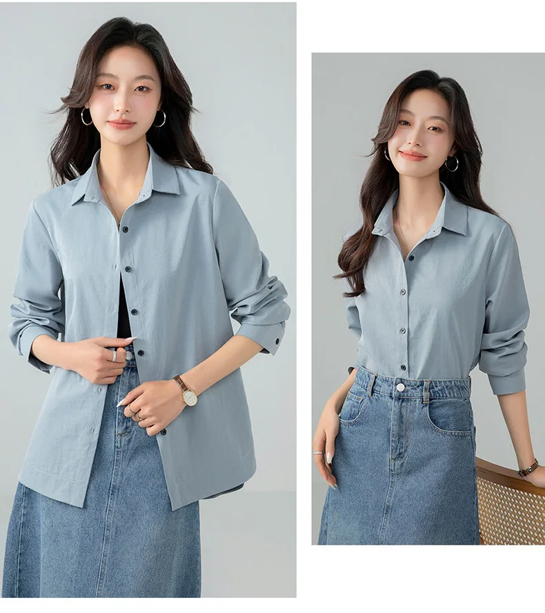 Model Number: HC25001,New Korean Fashion Spring and Autumn Casual Collar Shirt for Women Versatile Comfortable Loose and Stylish Slimming Shirt