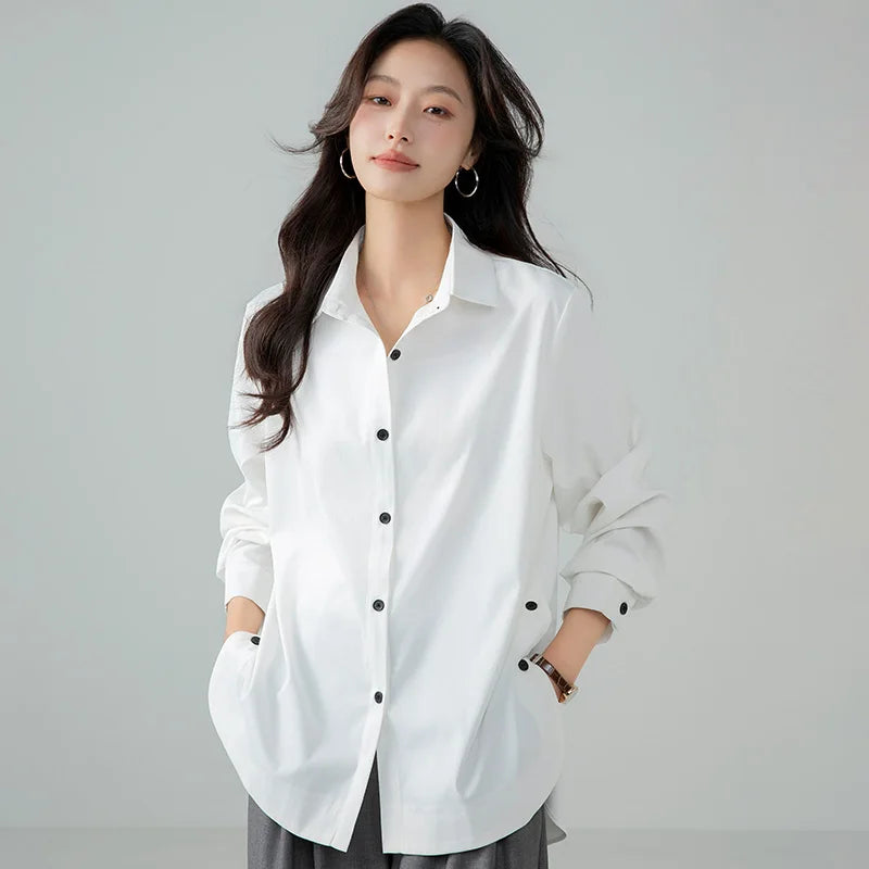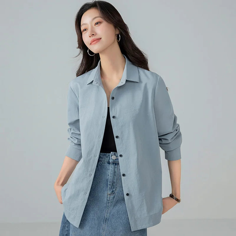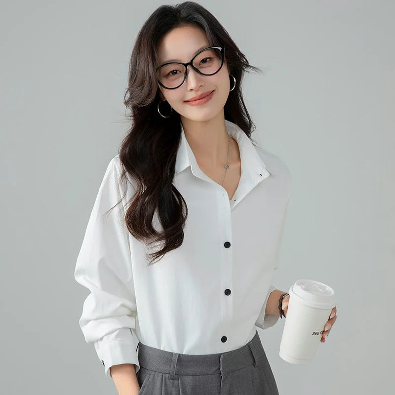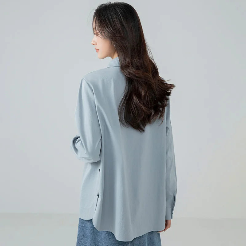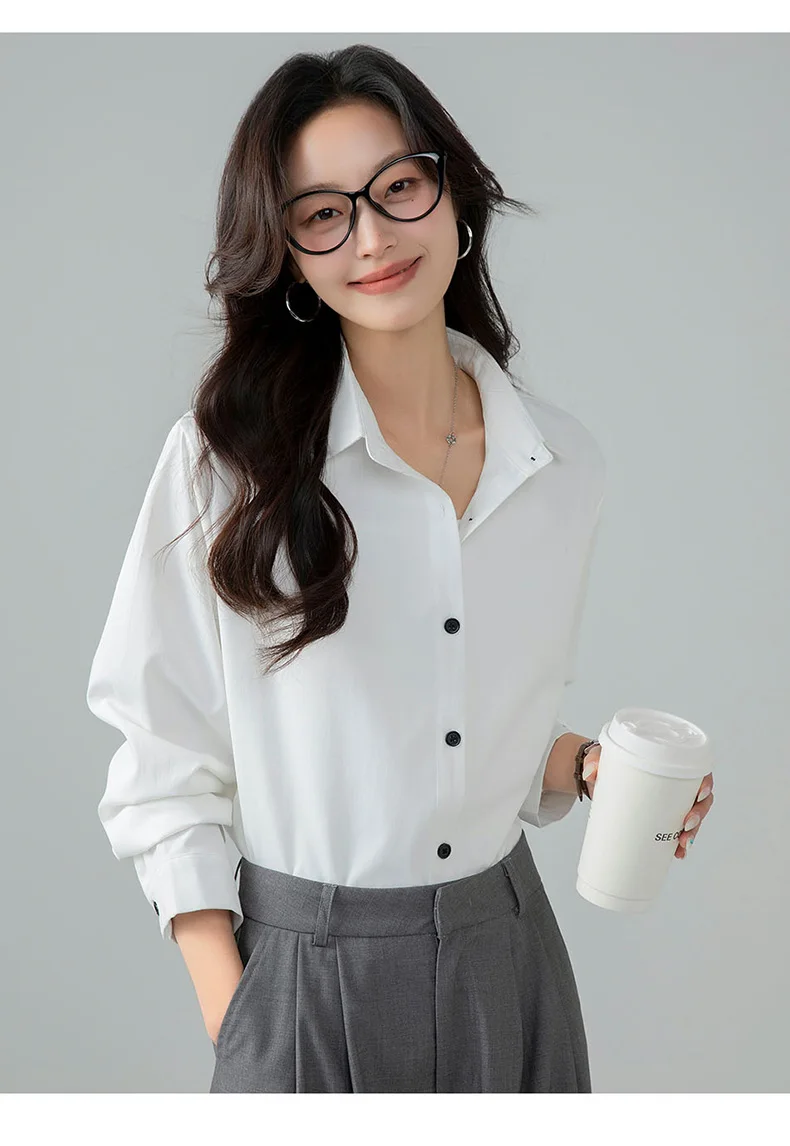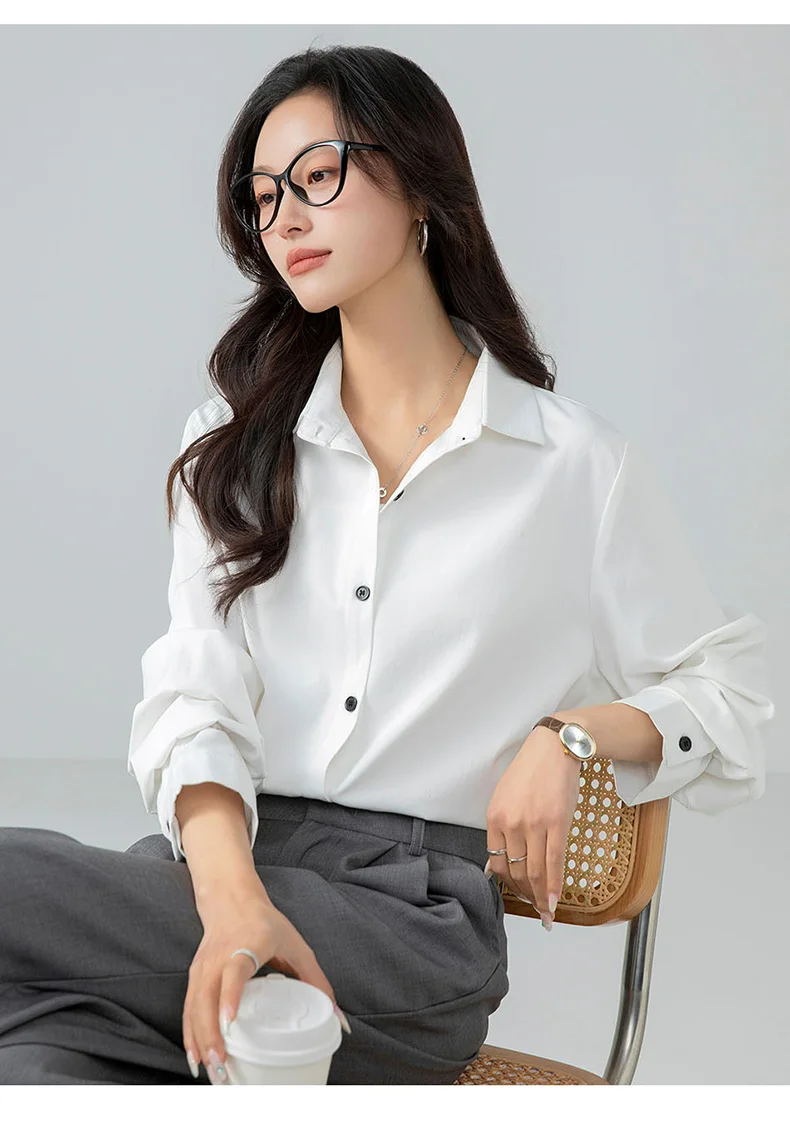 Model Number: HC25001,New Korean Fashion Spring and Autumn Casual Collar Shirt for Women Versatile Comfortable Loose and Stylish Slimming Shirt