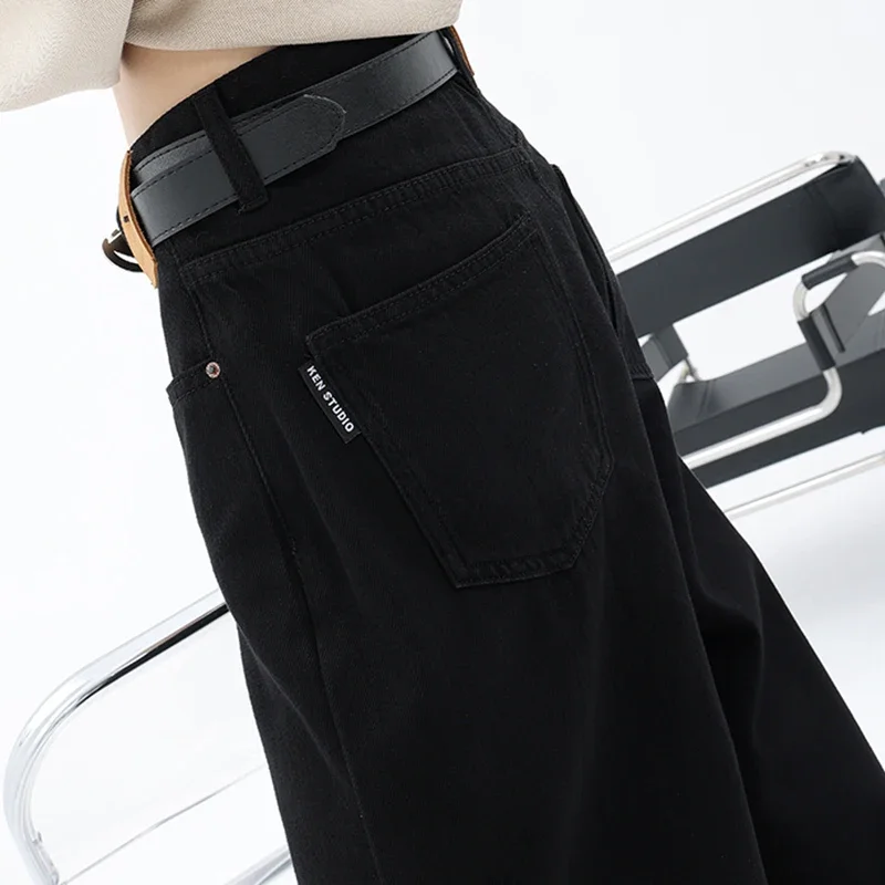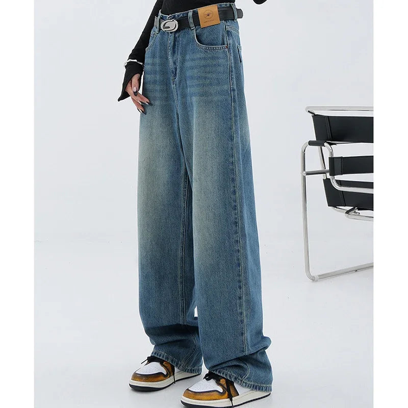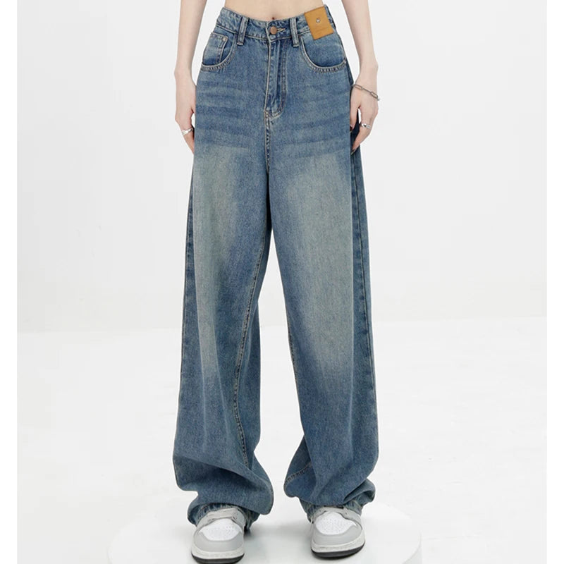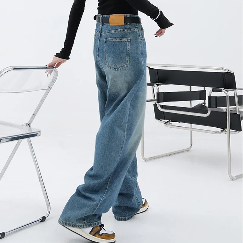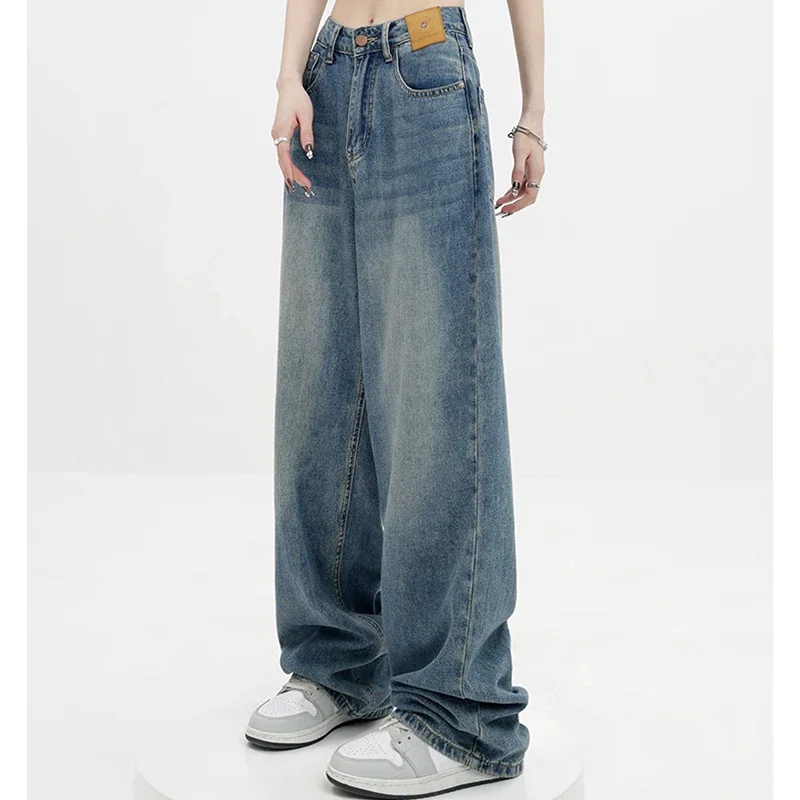 Woman High Waist 90s Vintage Stacked Baggy Jeans Lady Oversized Gothic Wide Leg Pants Lady Fashion Black Blue Y2k Denim Trousers