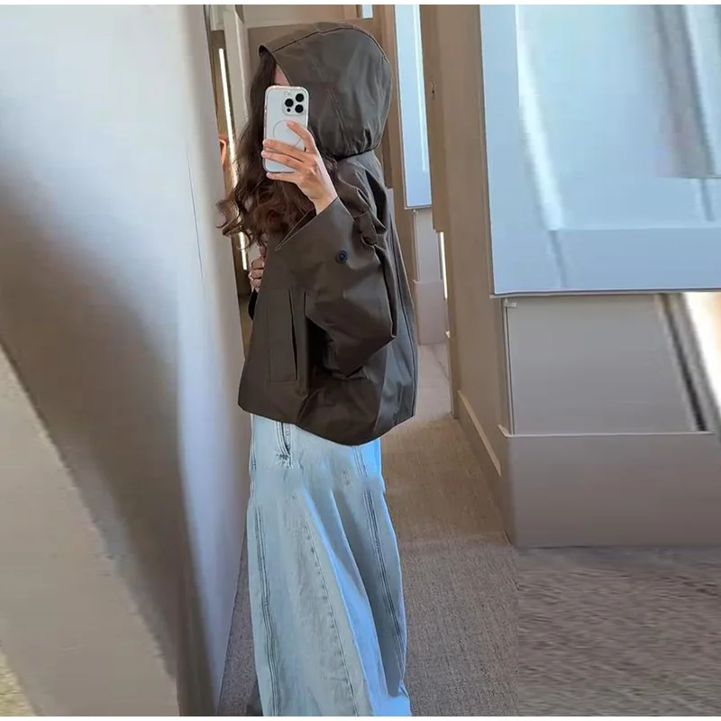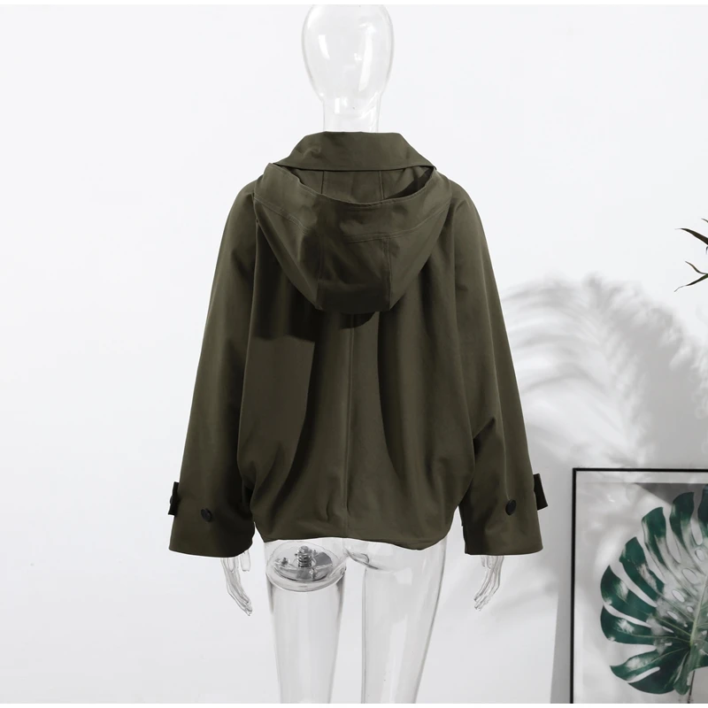 Equipped with a hood and full-opening design, it provides practicality and protection against the elements.