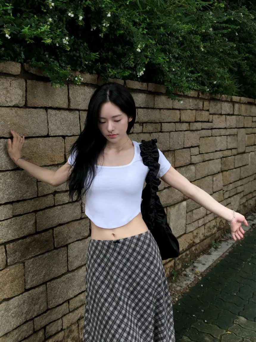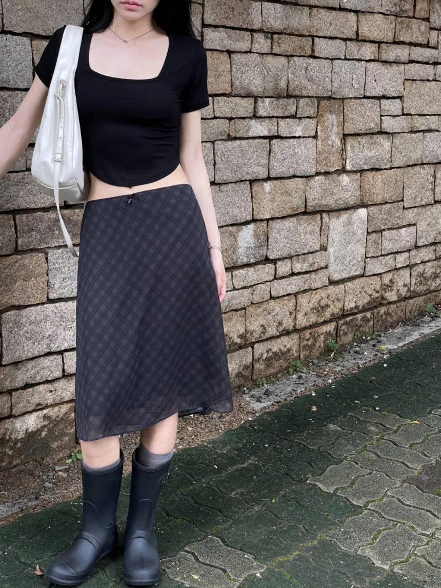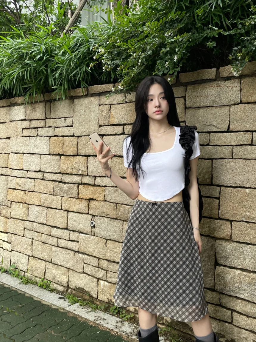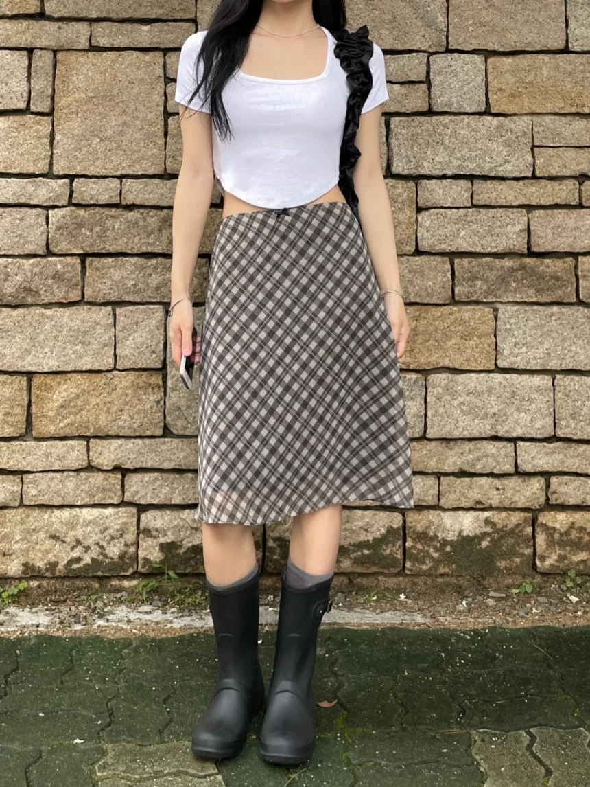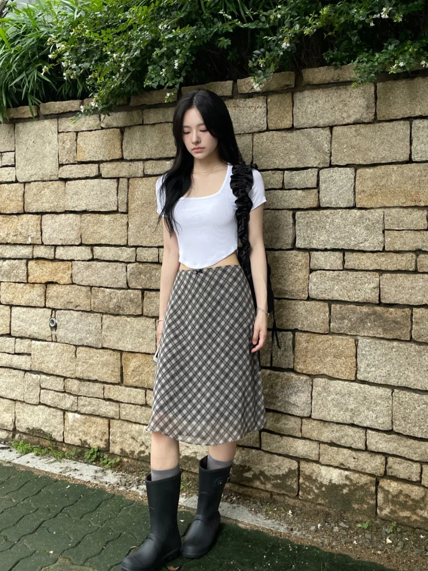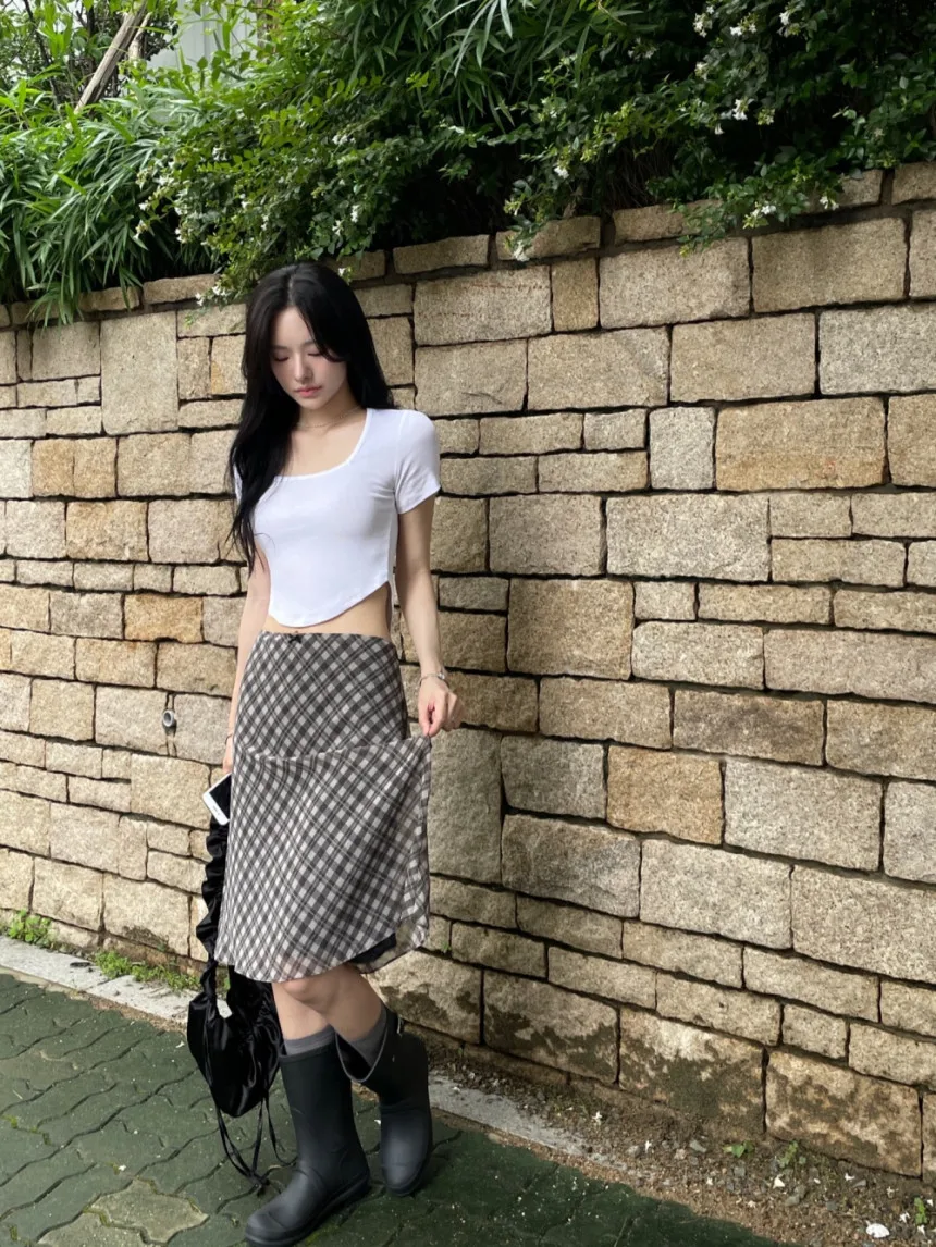 This chic French vintage plaid mini skirt exudes a Korean style that is both fashionable and timeless.