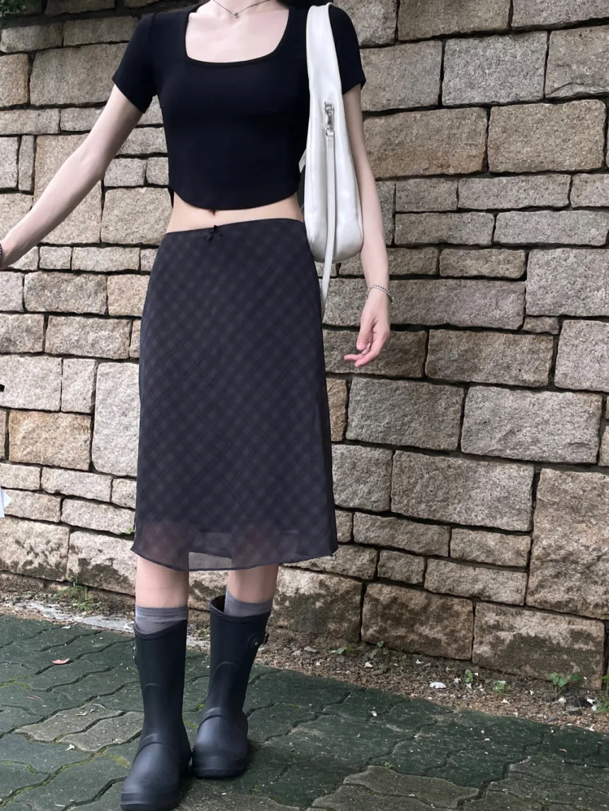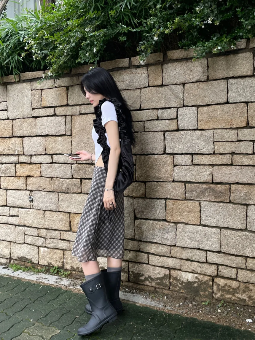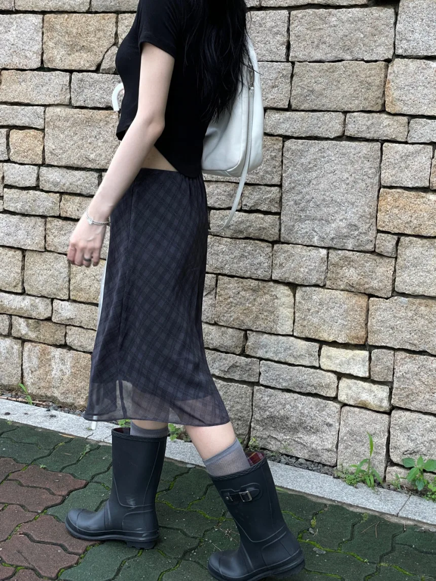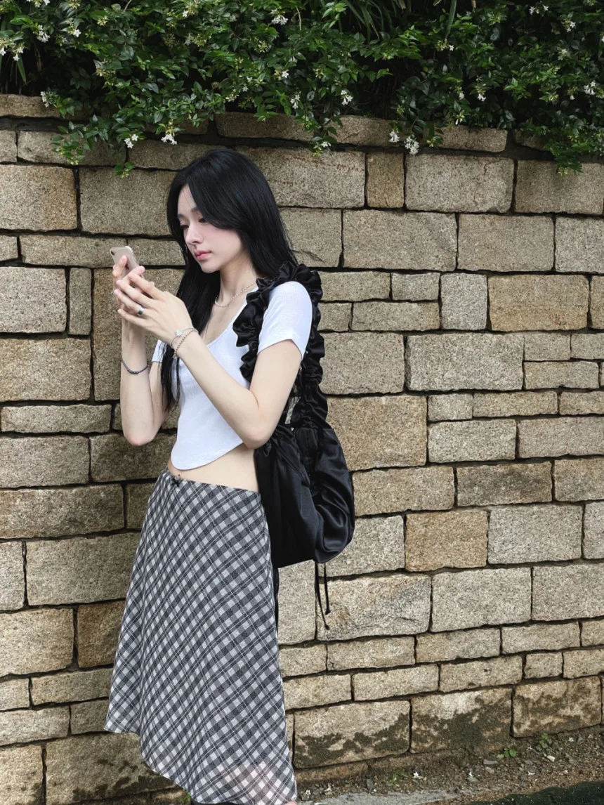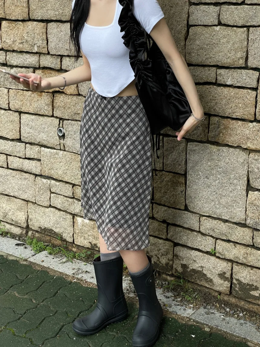 This chic French vintage plaid mini skirt exudes a Korean style that is both fashionable and timeless.