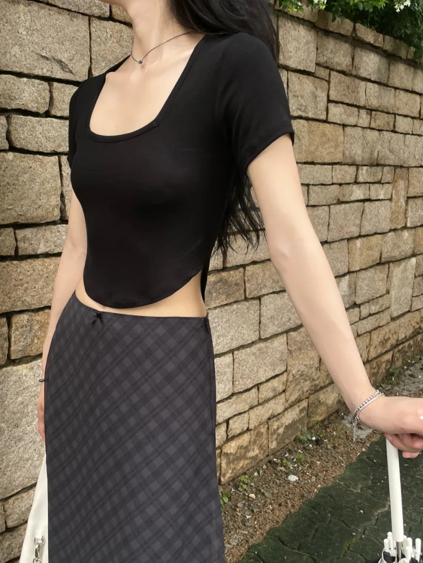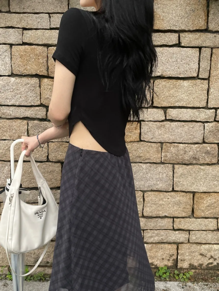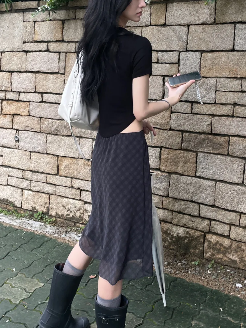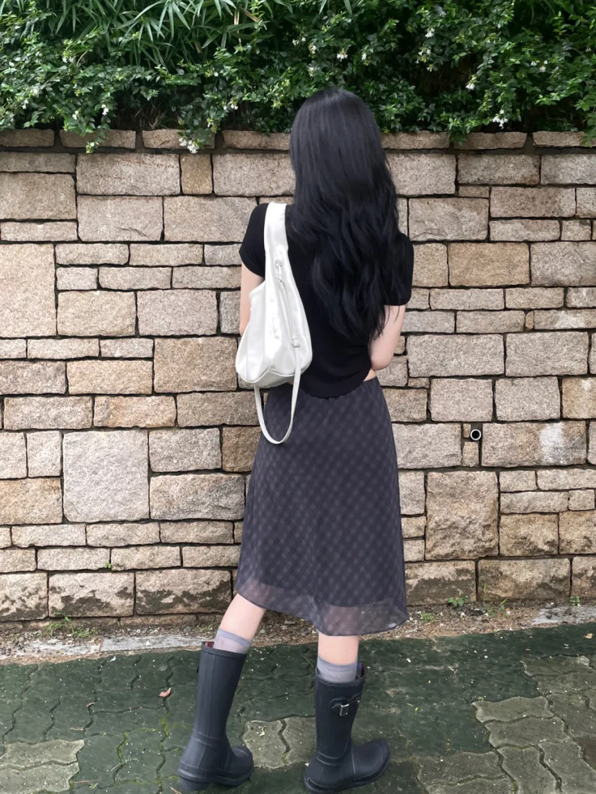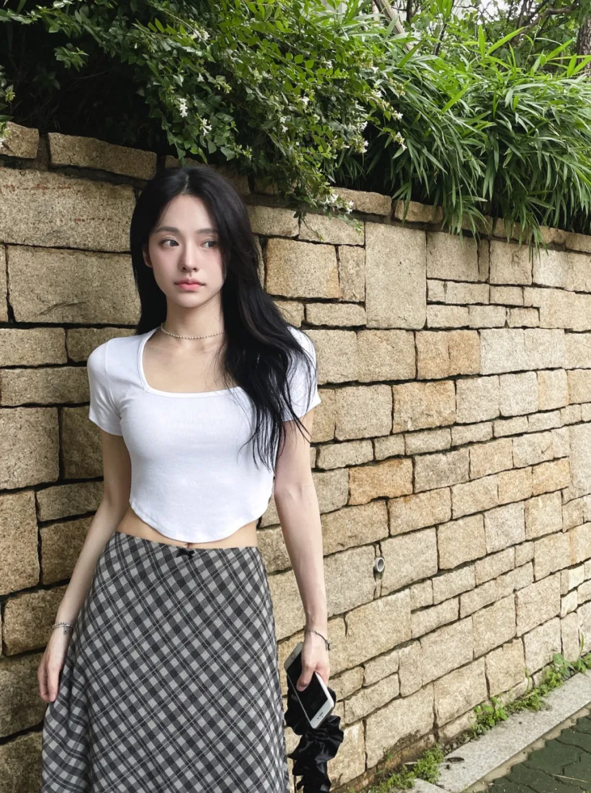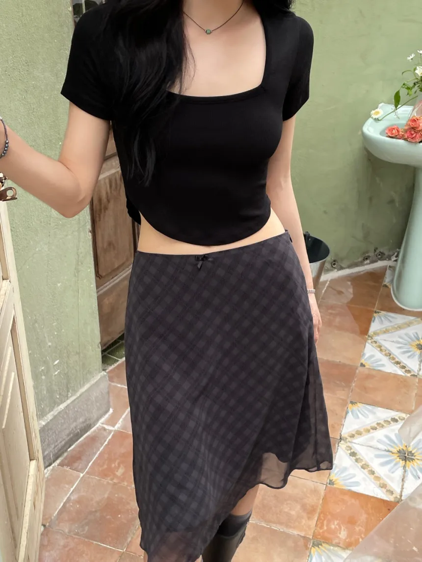 This chic French vintage plaid mini skirt exudes a Korean style that is both fashionable and timeless.